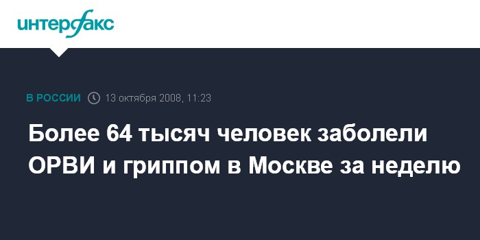 Москва. 13 октября. INTERFAX.RU - За неделю в Москве ОРВИ и гриппом заболели более 64,5 тысяч человек, сообщили "Интерфаксу" в столичном управлении Роспотребнадзора в понедельник.
