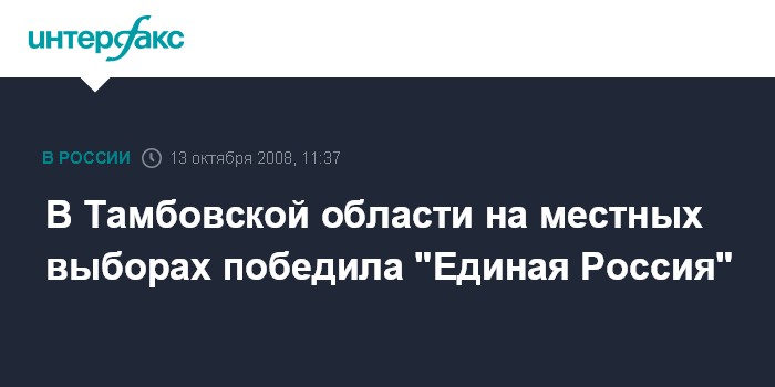 Москва. 13 октября. INTERFAX.RU - В Тамбовской области на прошедших в воскресенье муниципальных выборах и довыборах депутата облдумы победила "Единая Россия", сообщили "Интерфаксу" в понедельник в облизбиркоме.