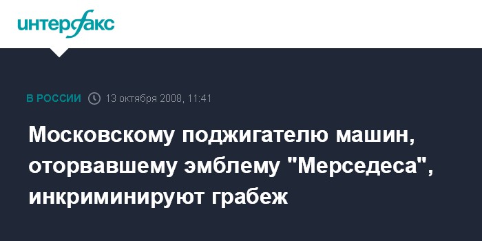 Московскому поджигателю машин, оторвавшему эмблему "Мерседеса", инкриминируют грабеж