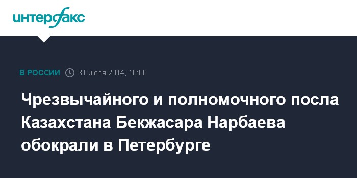 Чрезвычайного и полномочного посла Казахстана Бекжасара Нарбаева обокрали в Петербурге