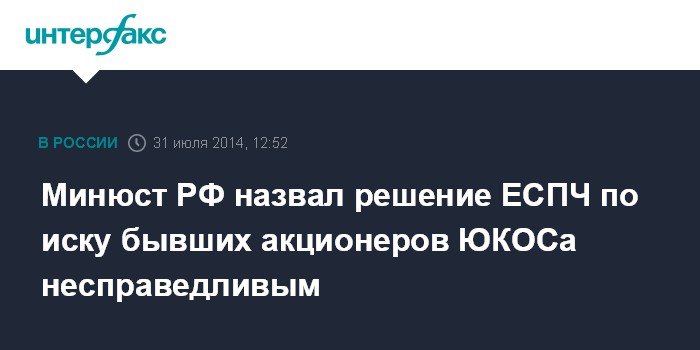 Минюст РФ назвал решение ЕСПЧ по иску бывших акционеров ЮКОСа несправедливым