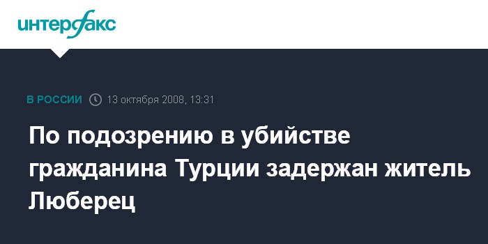 Москва. 13 октября. INTERFAX.RU - В Московской области раскрыто убийство гражданина Турции, сообщает в Следственном комитете при прокуратуре РФ. По подозрению в совершении преступления этого задержан 20-летний житель подмосковных Люберец. "По имеющимся данным, подозреваемый, находясь в ночном клубе, расположенном в г.Люберцы Московской области, нанес 42-летнему гражданину Турции Ахмету Кызылада множественные телесные повреждения. Работниками скорой помощи гражданин Турции был доставлен в больницу, но спасти его не удалось. От полученных ранений потерпевший скончался", - говорится в сообщении СКП РФ.