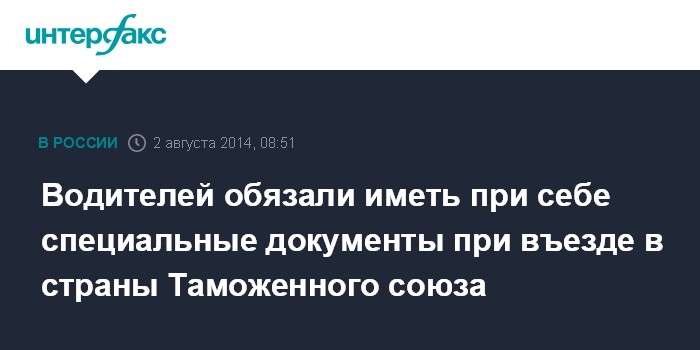 Москва. 2 августа. INTERFAX.RU - Премьер-министр РФ Дмитрий Медведев подписал постановление, обязывающее водителя транспортного средства, участвующего в международном движении, иметь при себе документы, предусмотренные таможенным законодательством Таможенного союза, с отметками таможенных органов, подтверждающими временный ввоз автомобиля.