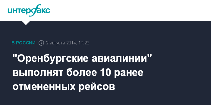 Москва. 2 августа. INTERFAX.RU - Авиакомпания "Оренбургские авиалинии", по данным на 17:00 субботы, в течение трех дней выполнит 11 чартерных рейсов из 36 отмененных ранее.