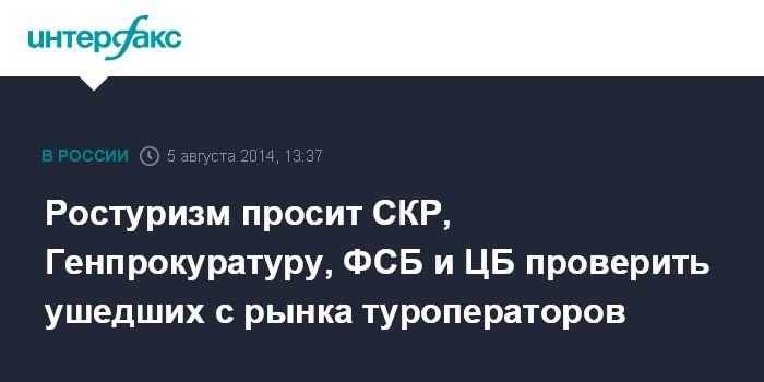 Пресс-секретарь Ростуризма Ирина Щеголькова добавила, что это было сделано для того, чтобы выяснить, не было ли то или иное банкротство преднамеренным.
