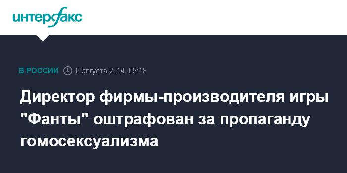 Директор фирмы-производителя игры "Фанты" оштрафован за пропаганду гомосексуализма