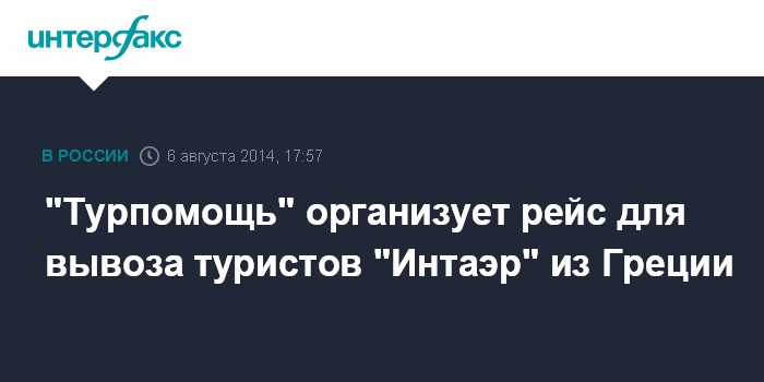 "Турпомощь" организует рейс для вывоза туристов "Интаэр" из Греции