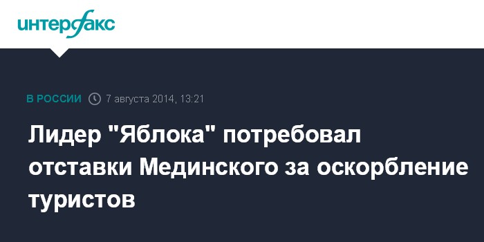 Лидер "Яблока" потребовал отставки Мединского за оскорбление туристов