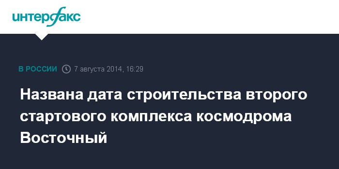 Москва. 7 августа. INTERFAX.RU - Работы по строительству второго стартового комплекса на космодроме Восточный начнутся в начале осени. Об этом сообщил вице-премьер Дмитрий Рогозин в четверг на церемонии представления нового гендиректора Государственного космического научно-производственного центра имени Хруничева.