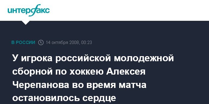 У игрока российской молодежной сборной по хоккею Алексея Черепанова во время матча остановилось сердце