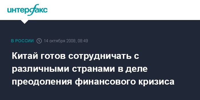 Китай готов сотрудничать с различными странами в деле преодоления финансового кризиса