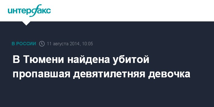 В Тюмени найдена убитой пропавшая девятилетняя девочка