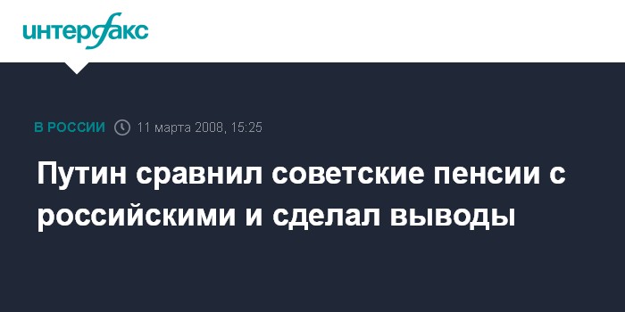 11 марта. INTERFAX.RU - Президент РФ Владимир Путин не согласен, что в советское время пенсионерам жилось лучше, однако нынешние пенсии тоже не считает достаточными.