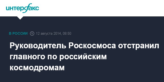 Москва. 12 августа. INTERFAX.RU - Глава Роскосмоса Олег Остапенко отстранил от должности Сергея Лазарева, исполняющего обязанности гендиректора ФГУП "Центр эксплуатации наземной космической инфраструктуры" (ЦЭНКИ) — эксплуатанта российских космодромов. Об этом сообщают "Известия" со ссылкой на самого Лазарева.