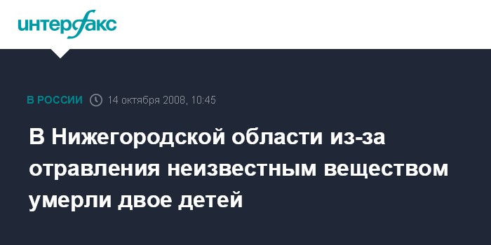Москва. 14 октября. INTERFAX.RU - В селе Лопатино Вадского района Нижегородской области несколько человек отравились неизвестным веществом, двое малолетних детей скончались.