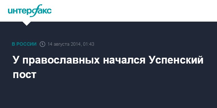 Москва. 14 августа. INTERFAX.RU - Успенский пост, который длится в течение двух недель, начинается 14 августа у православных верующих.