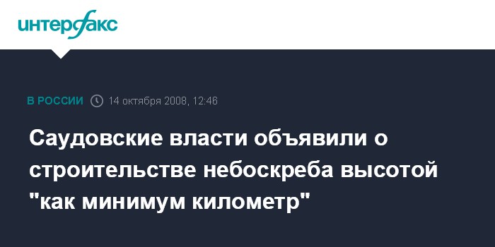 Вашингтон. 14 октября. INTERFAX.RU - Саудовский принц аль-Валид Бен-Талал объявил о начале строительства небоскреба высотой "как минимум километр" , сообщает американский телеканал CNN.