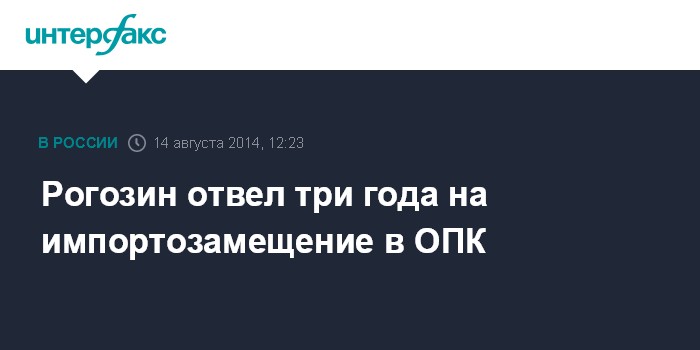 Москва. 14 августа. INTERFAX.RU - На импортозамещение в оборонно-промышленном комплексе потребуется несколько лет. Об этом заявил вице-премьер Дмитрий Рогозин.