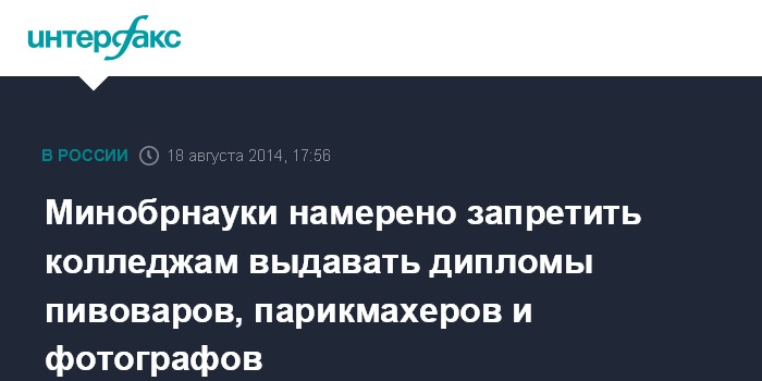 Минобрнауки намерено запретить колледжам выдавать дипломы пивоваров, парикмахеров и фотографов