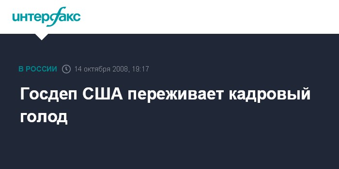 Москва. 14 октября. INTERFAX.RU - Кадровые проблемы госдепартамента США приводит к невыполнению некоторых поставленных задач, говорится в докладе группы отставных посолов и специалистов по внешней политике, подготовленном для Американской дипломатической академии.