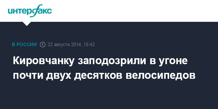 Москва. 22 августа. INTERFAX.RU - Полиция установила личность похитителя 19 велосипедов на территории Кирова - в угонах двухколесного транспорта подозревают несовершеннолетнюю жительницу областного центра, сообщает в пятницу пресс-служба УМВД по Кировской области.
