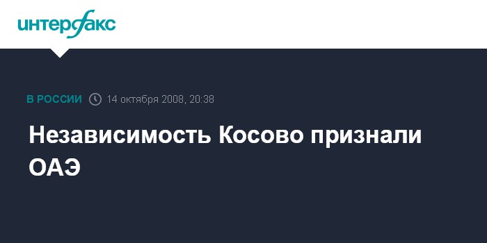 Москва. 14 октября. NTERFAX.RU - ОАЭ во вторник признали независимость Косово, это государство стало первой арабской страной, признавшей самопровозглашение этого сербского края.