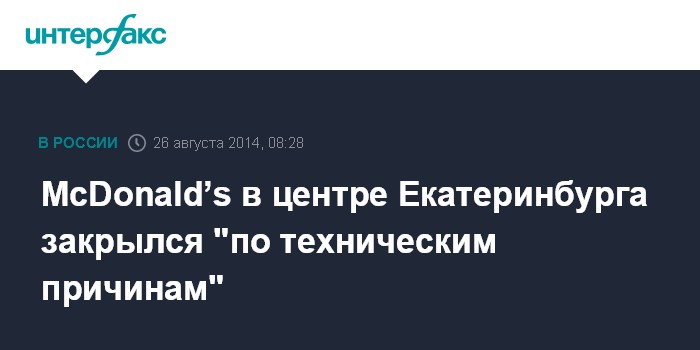 Москва. 26 августа. INTERFAX.RU - Один из ресторанов McDonald’s, расположенный в центре Екатеринбурга, в ночь на вторник оказался недоступен для посетителей, сообщает местный блогер Алексей Сохович.