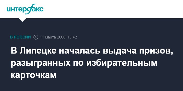 Липецк. 11 марта. INTERFAX.RU - Выдача призов, разыгранных по карточкам избирателей, которые распространялись в ходе голосования на состоявшихся 2 марта президентских выборах, началась во вторник в здании администрации Липецка.
