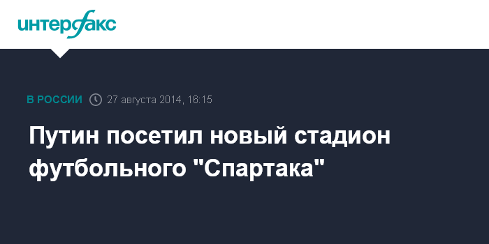 Москва. 27 августа. INTERFAX.RU - Президент России Владимир Путин в среду посетил в Москве новый стадион футбольного клуба "Спартак" - "Открытие Арена", на котором помимо матчей столичной команды пройдут игры чемпионата Мира по футболу в 2018 году.