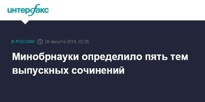 Москва. 28 августа. INTERFAX.RU - Минобрнауки определило пять тем для сочинений по русскому языку и литературе, по результатам которых будет приниматься решение о допуске или недопуске школьника к единому государственному экзамену, сообщает в четверг "Коммерсант".