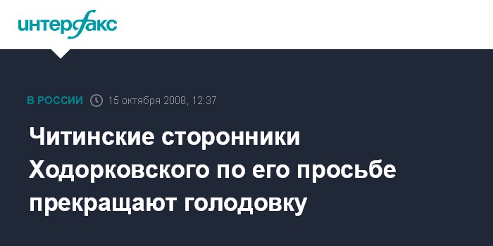 Москва. 15 октября. INTERFAX.RU - Сторонники экс-главы НК "ЮКОС" Михаила Ходорковского в среду заявили о прекращении голодовки в Чите.