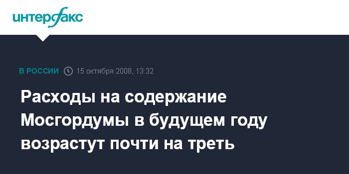 Как сообщил депутатам глава парламентского аппарата Олег Адабашьян, расходы думы в следующем году возрастут почти на 300 млн рублей и составят 1,23 млрд рублей. Так, расходы на председателя Мосгордумы составят 4,4 млн рублей, на депутатов - 164 млн рублей. "Затраты на обеспечение деятельности аппарата Мосгордумы составят 1,03 млрд рублей, в том числе 564 млн рублей на зарплаты и начисления и 462 млн рублей на содержание думы", - уточнил Адабашьян. По его словам, расходы на содержание Мосгордумы возрастут почти на треть в связи с тем, что здания думы в Рахмановском переулке, на Петровке 22 передаются в оперативное управление самой думы, а также помещения архива на Петровке.