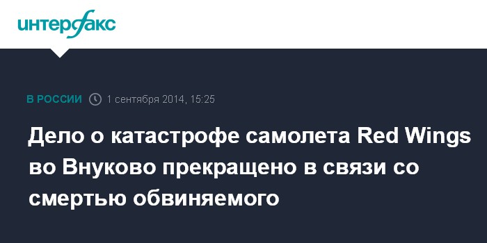 Дело о катастрофе самолета Red Wings во Внуково прекращено в связи со смертью обвиняемого