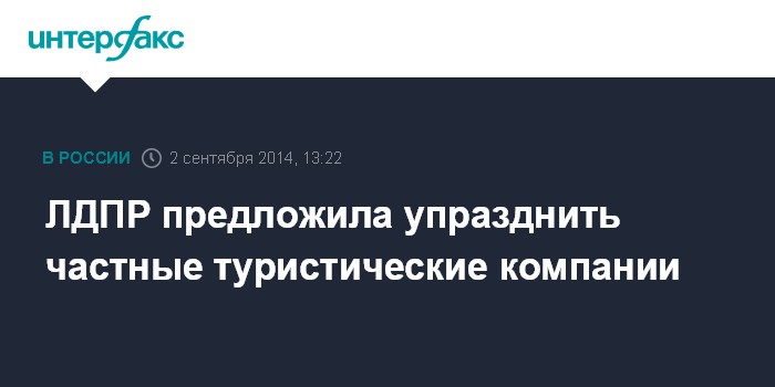 Москва. 2 сентября. INTERFAX.RU - ЛДПР предлагает закрыть частные туристические компании и создать в России единую государственную организацию, занимающуюся иностранным туризмом.