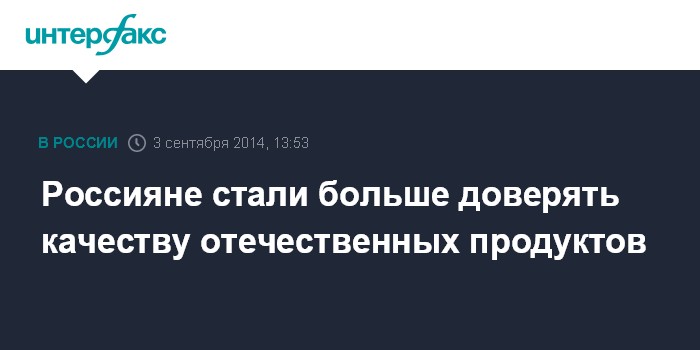 Москва. 3 сентября. INTERFAX.RU - Качество отечественного продовольствия выше, чем импортного - так считают 64% россиян, принявших участие в августовском опросе ВЦИОМ.