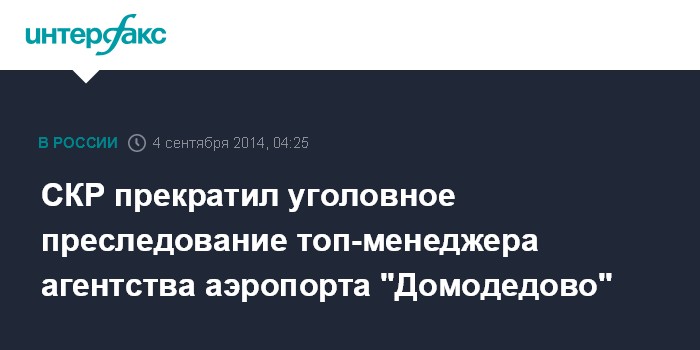 СКР прекратил уголовное преследование топ-менеджера агентства аэропорта "Домодедово"