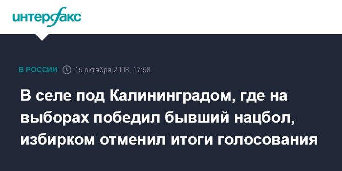 Калининград. 15 октября. INTERFAX.RU - В Калининградской области Гурьевская территориальная избирательная комиссия (ТИК) признала недействительными выборы в Большеисаковском сельском поселении, где победителем стал бывший национал-большевик Денис Оснач.