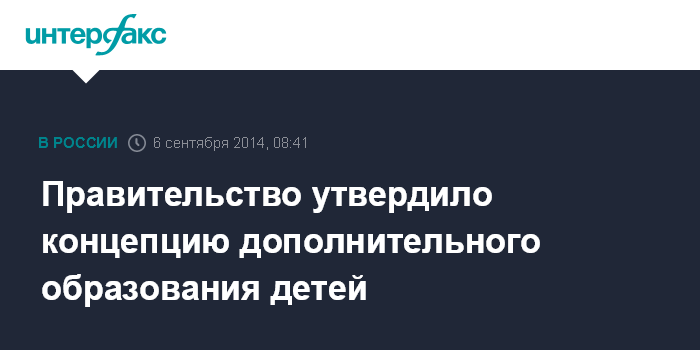 Москва. 6 сентября. INTERFAX.RU - Премьер-министр РФ Дмитрий Медведев подписал распоряжение об утверждении концепции дополнительного образования детей.