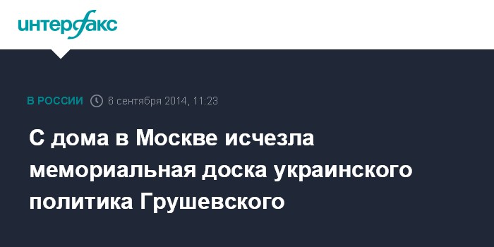 С дома в Москве исчезла мемориальная доска украинского политика Грушевского