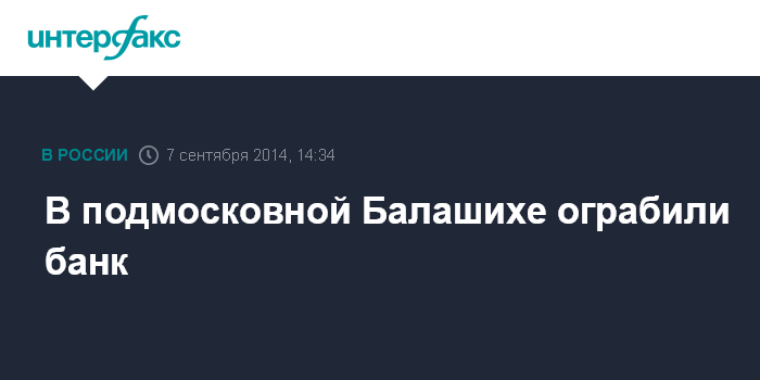 Москва. 7 сентября. INTERFAX.RU - Двое преступников ограбили отделение банка в подмосковной Балашихе, сообщили "Интерфаксу" в пресс-службе ГУ МВД РФ по Московской области.