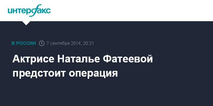 Москва. 7 сентября. INTERFAX.RU - Актрисе Наталье Фатеевой предстоит операция на тазобедренном суставе, сообщил в воскресенье ее сын режиссер Владимир Басов