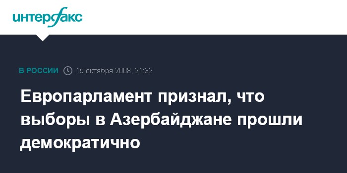 Москва. 15 октября. INTERFAX.RU -Миссия наблюдателей от Европарламента оценивает президентские выборы в Азербайджане, как соответствующие международным стандартам.