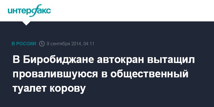 В Биробиджане автокран вытащил провалившуюся в общественный туалет корову