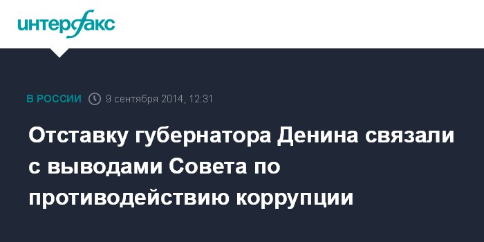 Отставку губернатора Денина связали с выводами Совета по противодействию коррупции