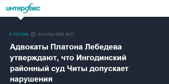 Как сообщалось, Читинский областной суд на заседании принял решение отправить документы адвокатов П.Лебедева на дооформление в Ингондинский районный суд Читы.