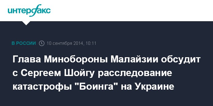 Глава Минобороны Малайзии обсудит с Сергеем Шойгу расследование катастрофы "Боинга" на Украине