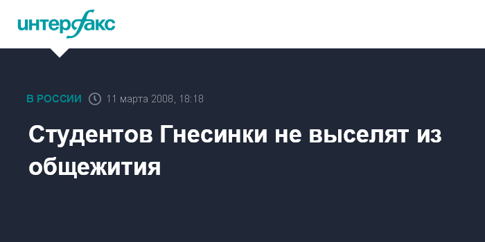 Москва. 11 марта. INTERFAX.RU - Руководство Российской академии музыки имени Гнесиных пообещало студентам, что их опасения о выселении из общежития беспочвенны, сообщила "Интерфаксу" во вторник член студенческого актива академии Екатерина Алексеева.