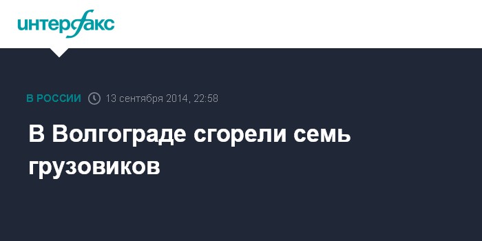 Москва. 13 сентября. INTERFAX.RU - Семь грузовых автомобилей горели на открытой стоянке в Волгограде, сообщили "Интерфаксу" в пресс-службе регионального ГУ МЧС в субботу.