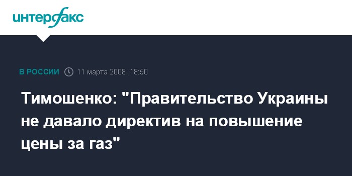 Тимошенко: "Правительство Украины не давало директив на повышение цены за газ"