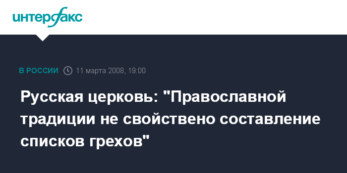 Русская церковь: "Православной традиции не свойствено составление списков грехов"